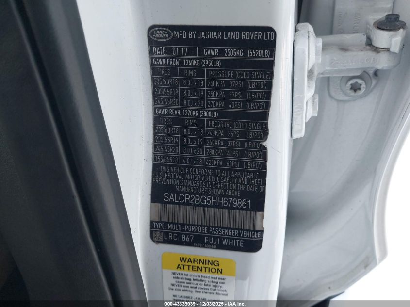 2017 LAND ROVER DISCOVERY 2017 року Бензин, 2.0, Повний привід, vin - SALCR2BG5HH679861 з США