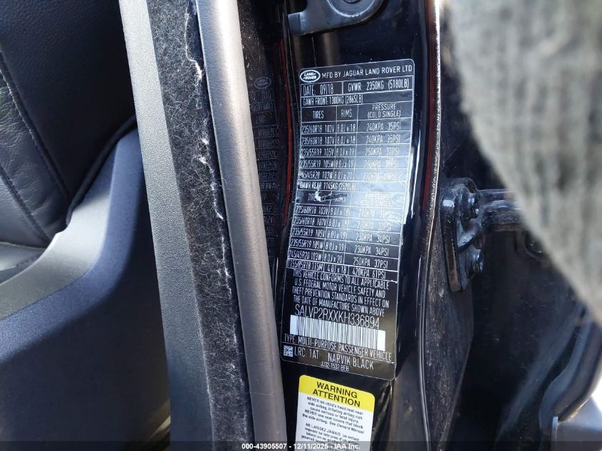 2019 LAND ROVER RANGE ROVER EVOQUE 2019 року Бензин, 2.0, Повний привід, vin - SALVP2RXXKH336894 з США