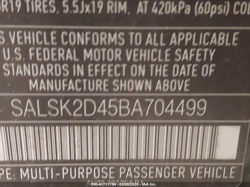 Колір ЧорнийЦиліндри 8Привід Повний привідVIN SALSK2D45BA704499Стан Заводиться та їде (перевірено)Ушкодження Незначні
