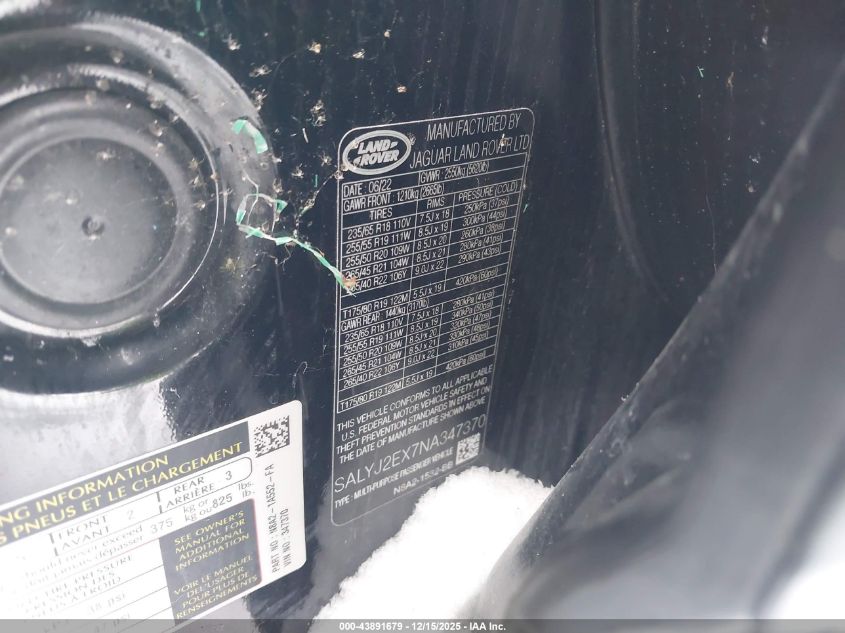 2022 LAND ROVER RANGE ROVER VELAR 2022 року Бензин, 2.0, Повний привід, vin - SALYJ2EX7NA347370 з США