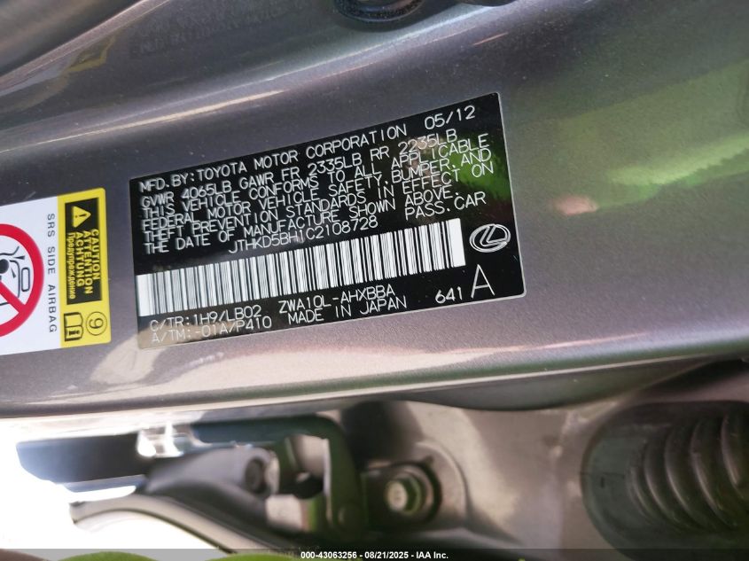 2012 LEXUS CT 200H 200