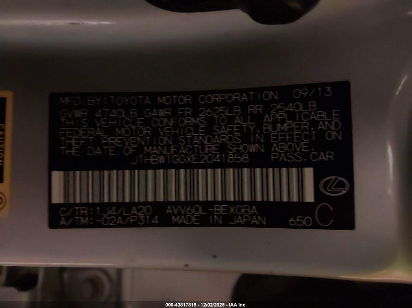 2014 LEXUS ES 300H