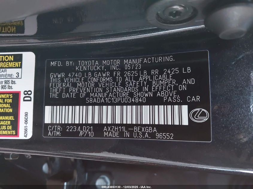 2023 LEXUS ES 300H 2023 року Гібрид, 2.5, Передній привід, vin - 58ADA1C13PU034840 з США