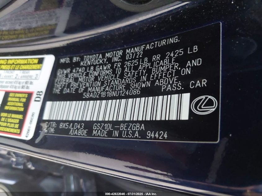 2022 LEXUS ES 350 BASE