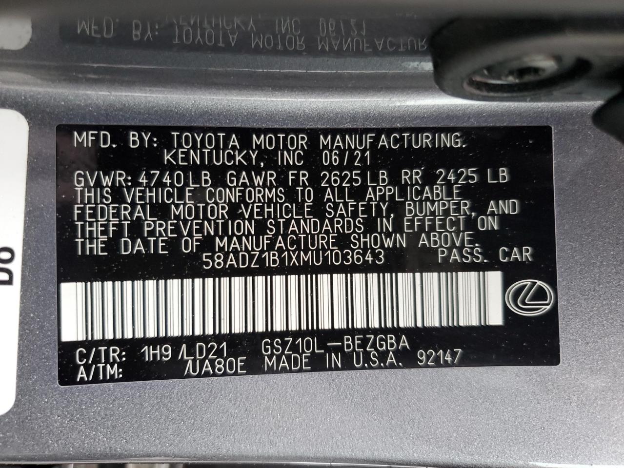 2021 LEXUS ES 350 2021 року Бензин, 3.5, , vin - 58ADZ1B1XMU103643 з США