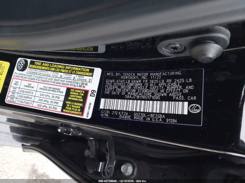 2024 LEXUS ES 350 2024 року Бензин, 3.5, Передній привід, vin - 58AJZ1B11RU171095 з США