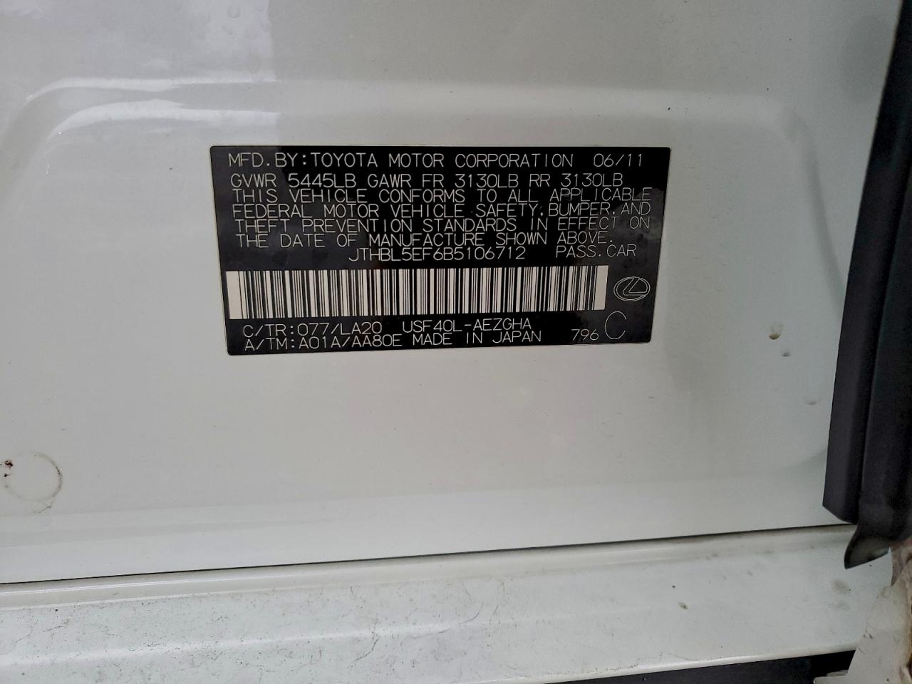 Колір БілийЦиліндри 8Привід Задній привідVIN JTHBL5EF6B5106712Стан Заводиться та їде (перевірено)Ушкодження НезначніДата аукціону 2025-12-05 AutoRIA