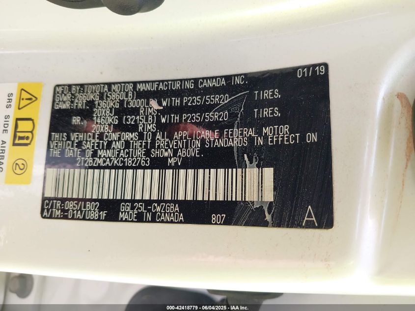 Колір БілийЦиліндри 6Привід Повний привідVIN 2T2BZMCA7KC******Стан НевідомоУшкодження ЗадняДата аукціону 2025-06-20