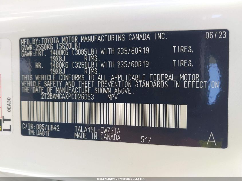 Колір БілийЦиліндри 4Привід Повний привідVIN 2T2BAMCAXPC******Стан НевідомоУшкодження Передня або задняДата аукціону 2025-09-24