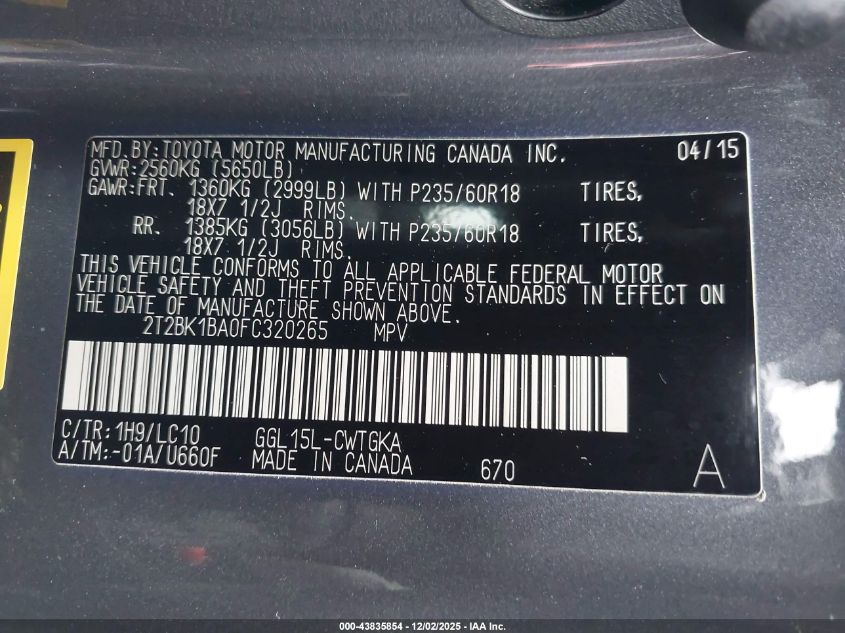 Колір СірийЦиліндри 6Привід Повний привідVIN 2T2BK1BA0FC320265Стан Заводиться та їде (перевірено)Ушкодження Передня права AutoRIA