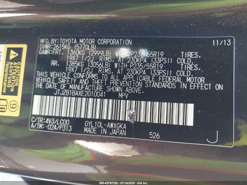 Колір ШампаньЦиліндри 6Привід Передній привідVIN JTJZB1BAXE2******Стан НевідомоУшкодження Передня праваДата аукціону 2025-09-03