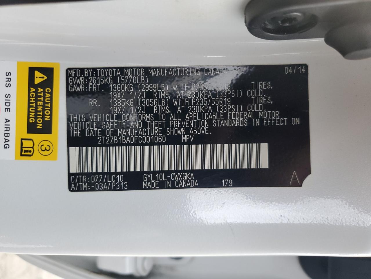 Колір БілийЦиліндри 6VIN 2T2ZB1BA0FC001060Стан Заводиться та їде (перевірено)Ушкодження Передня або задня AutoRIA