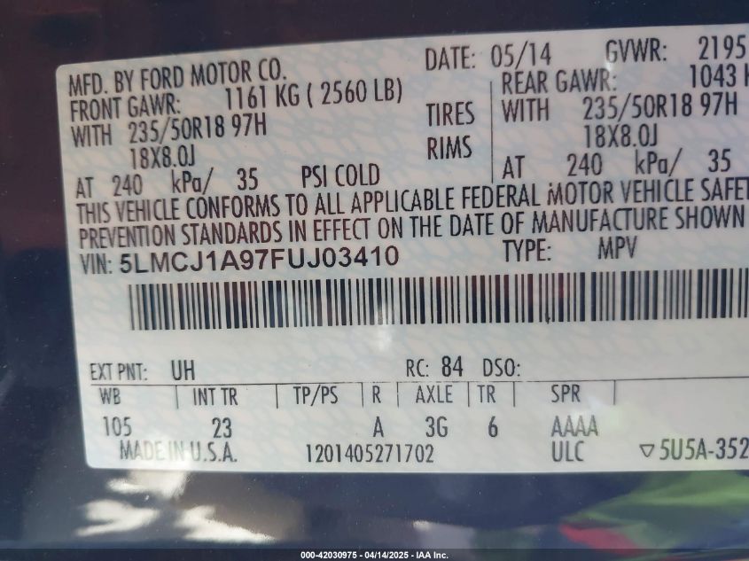 2015 LINCOLN MKC 2015 року Бензин, 2.0, Передній привід, vin - 5LMCJ1A97FU****** з США