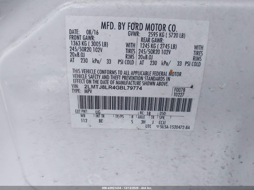 2016 LINCOLN MKX 2016 року Бензин, 3.7, Повний привід, vin - 2LMTJ8LR4GBL79774 з США