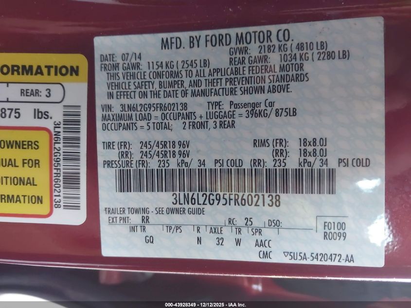 2015 LINCOLN MKZ