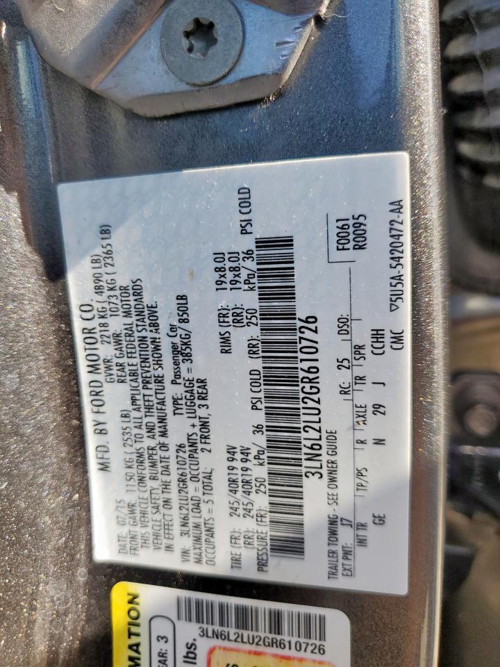 2016 LINCOLN MKZ 2016 року Гібрид, 2.0, , vin - 3LN6L2LU2GR610726 з США