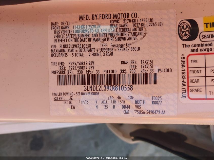 2012 LINCOLN MKZ
