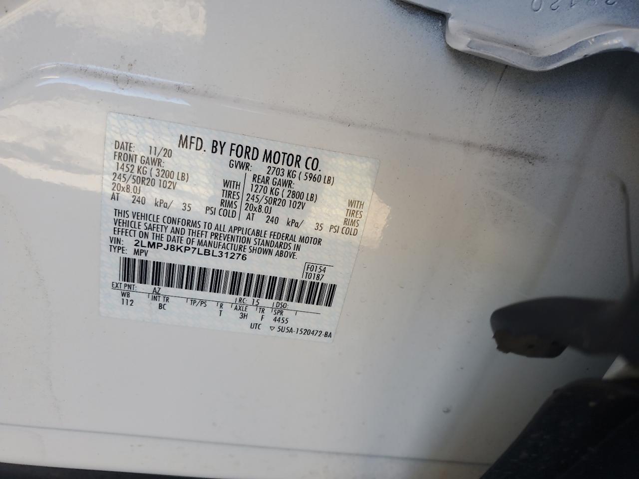 Колір БілийЦиліндри 6Привід Повний привідVIN 2LMPJ8KP7LBL31276Стан Заводиться та їде (перевірено)Ушкодження Передня або задня AutoRIA