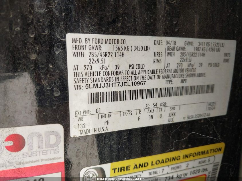 2018 LINCOLN NAVIGATOR 2018 року Бензин, 3.5, , vin - 5LMJJ3HT7JEL10967 з США