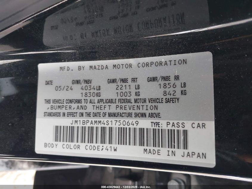 2025 MAZDA 3 2025 року Бензин, 2.5, Передній привід, vin - JM1BPAMM4S1750649 з США