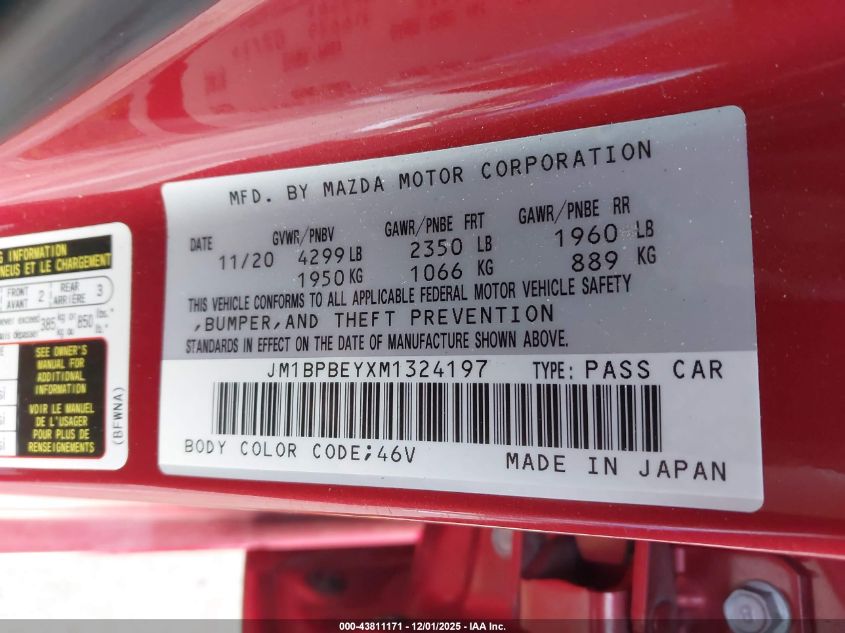 2021 MAZDA 3 2021 року Бензин, 2.5, Повний привід, vin - JM1BPBEYXM1324197 з США