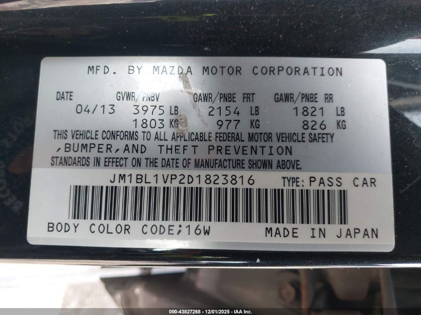 Колір ЧорнийЦиліндри 4Привід Передній привідVIN JM1BL1VP2D1823816Стан Заводиться та їде (перевірено)Ушкодження Звичайний зносДата аукціону 2025-12-05 AutoRIA