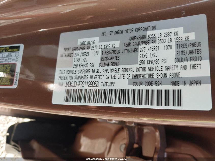 2025 MAZDA CX-70 2025 року Гібрид, 2.5, Повний привід, vin - JM3KJDHA7S1129058 з США