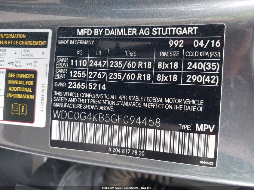 Колір СірийЦиліндри 4Привід Повний привідVIN WDC0G4KB5GF******Стан НевідомоУшкодження Передня або задня