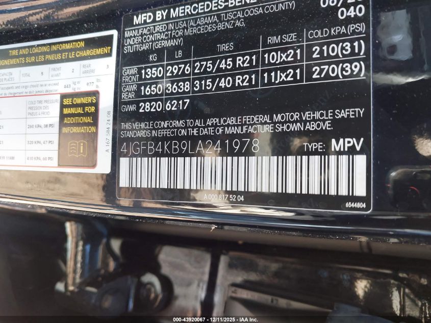2020 MERCEDES-BENZ GLE-CLASS 2020 року Бензин, 2.0, Повний привід, vin - 4JGFB4KB9LA241978 з США