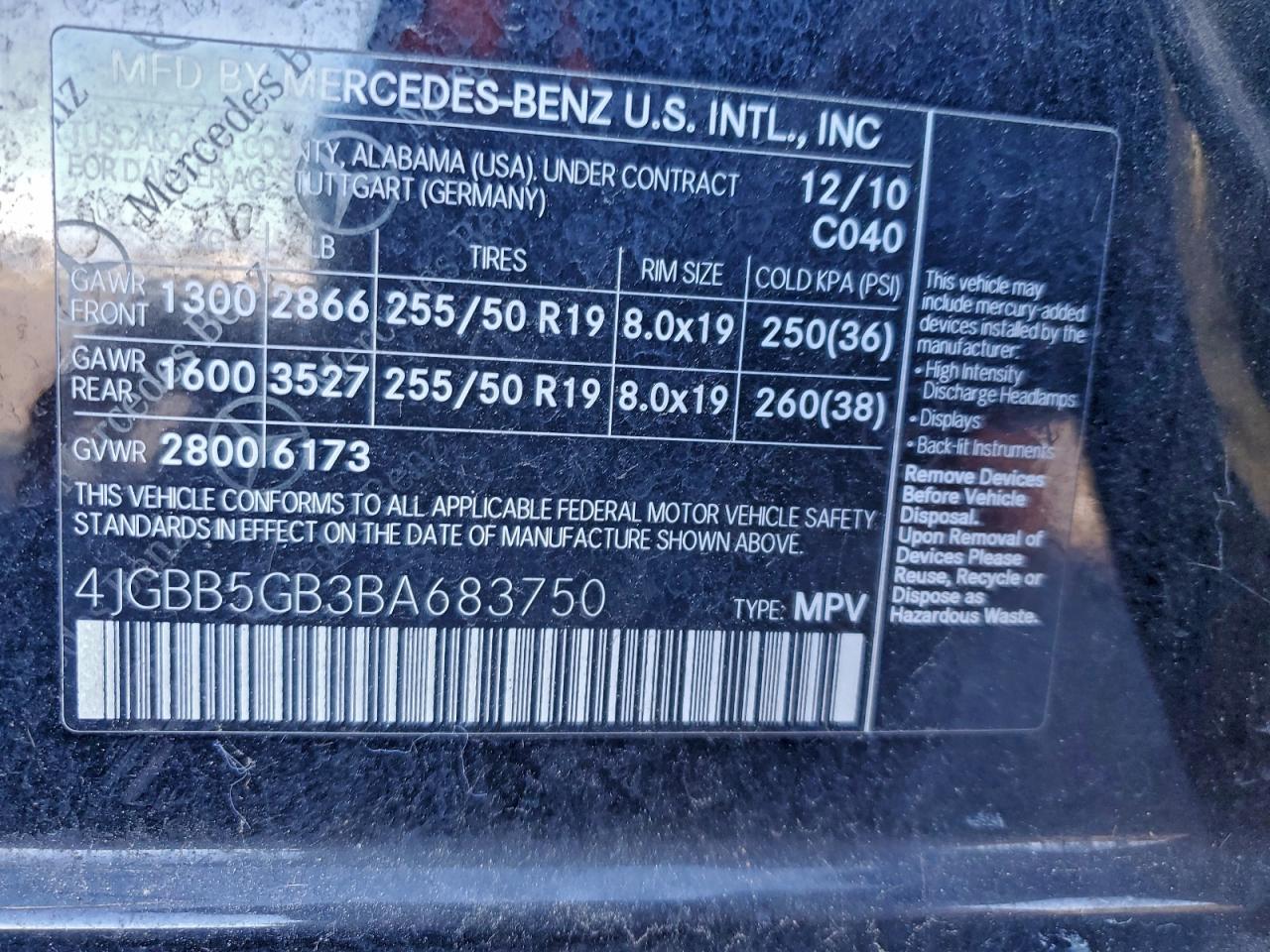 2011 MERCEDES-BENZ M-CLASS 2011 року Бензин, 3.5, Задній привід, vin - 4JGBB5GB3BA683750 з США