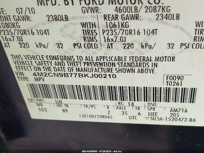 2011 MERCURY MARINER PREMIER