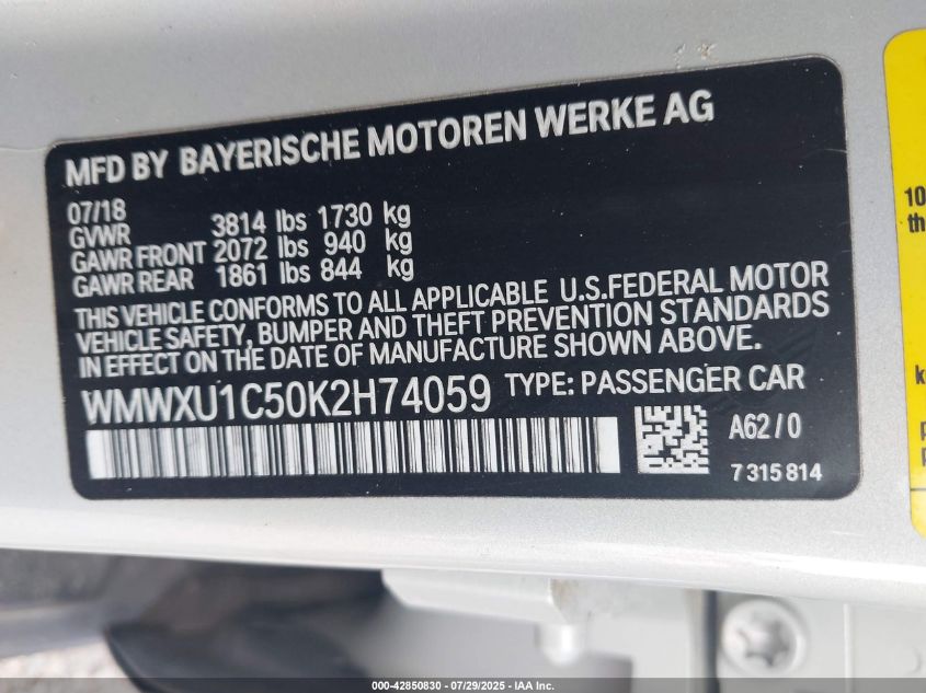 Колір БілийЦиліндри 3Привід Передній привідVIN WMWXU1C50K2******Стан НевідомоУшкодження ВодаДата аукціону 2025-09-02