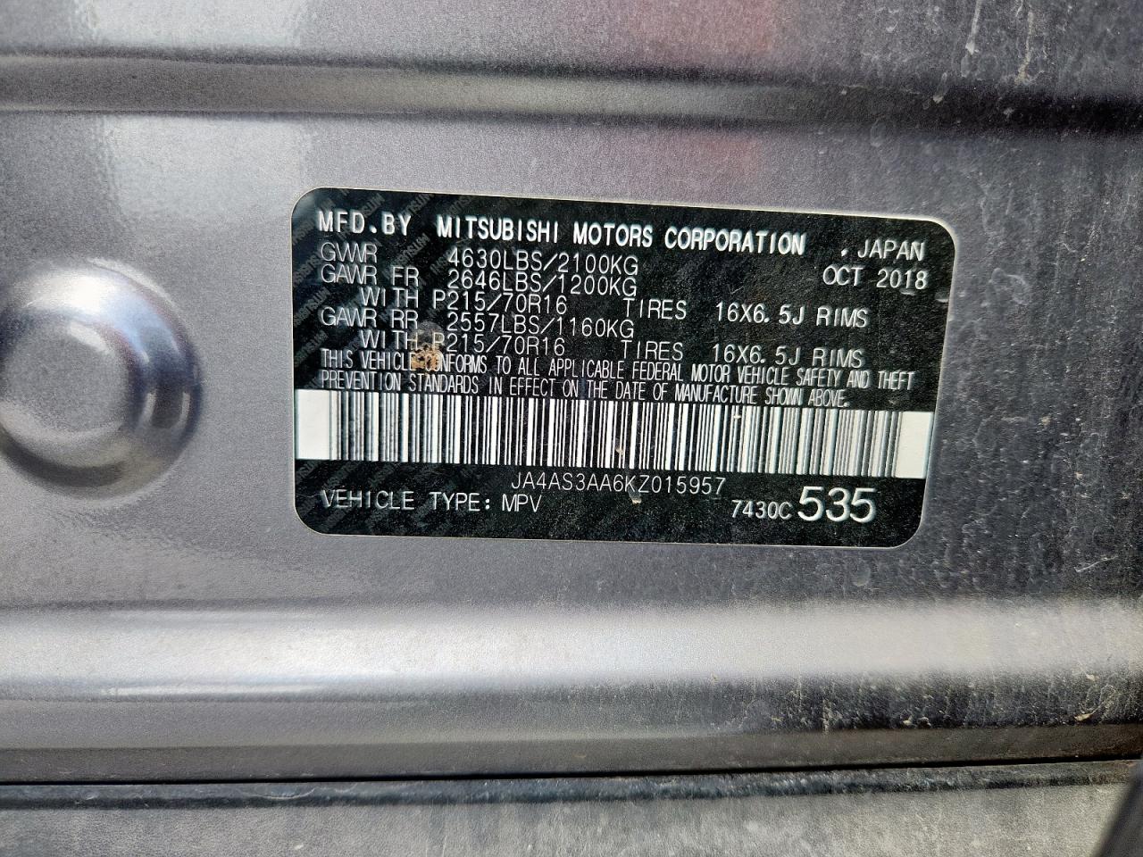 2019 MITSUBISHI ECLIPSE 2019 року Бензин, 1.5, , vin - JA4AS3AA6KZ015957 з США