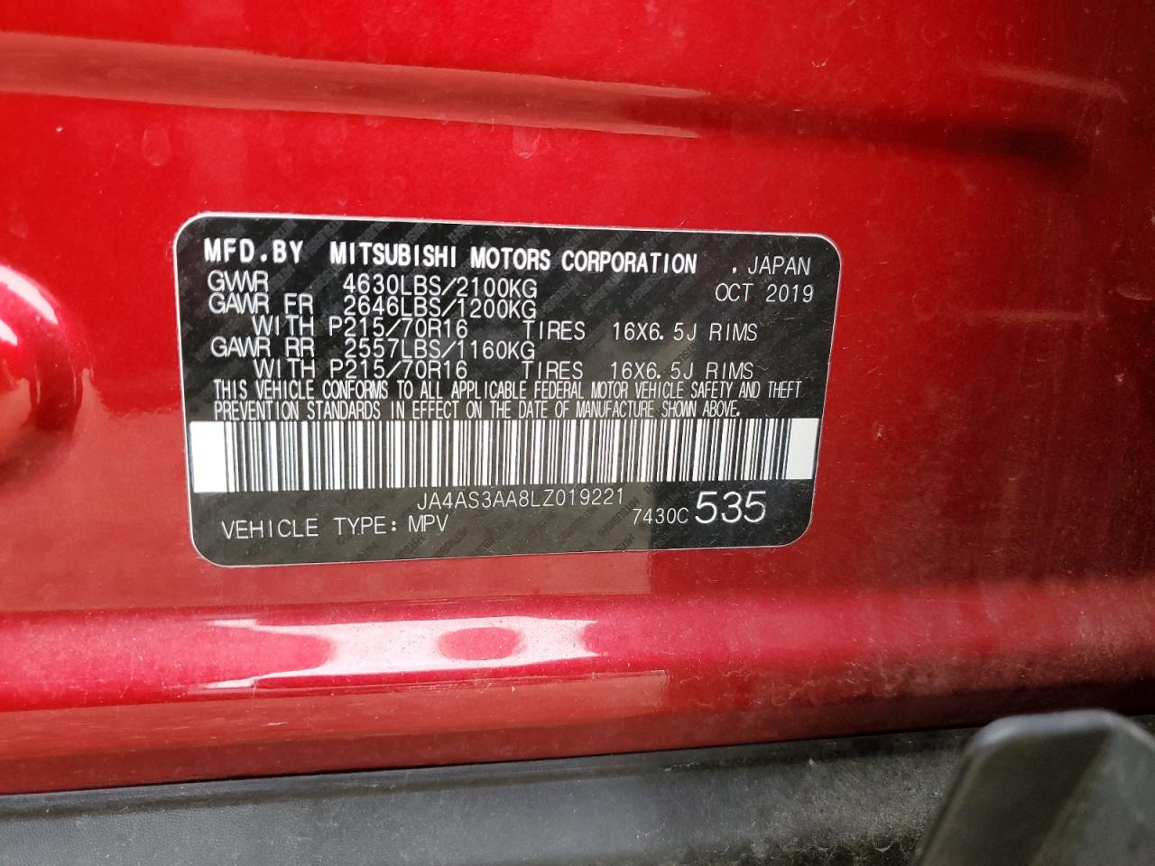 Колір ЧервонийЦиліндри 4VIN JA4AS3AA8LZ019221Стан ЗаводитьсяУшкодження З боківДата аукціону 2025-08-21