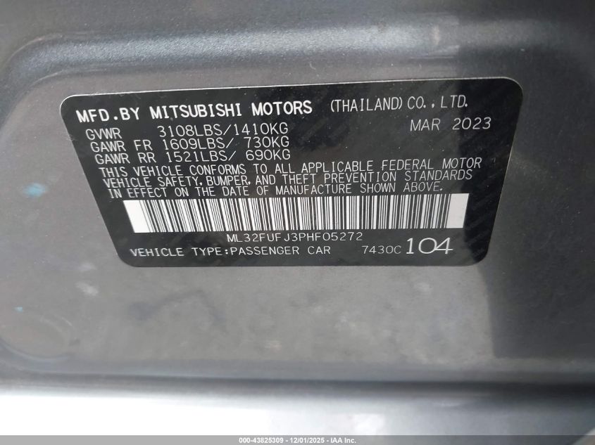 2023 MITSUBISHI MIRAGE 2023 року Бензин, 1.2, Передній привід, vin - ML32FUFJ3PHF05272 з США