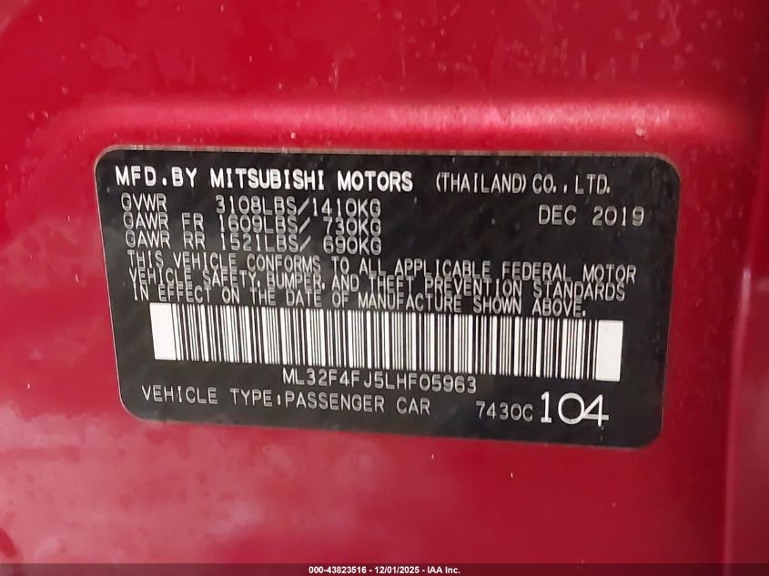 2020 MITSUBISHI MIRAGE G4 ES