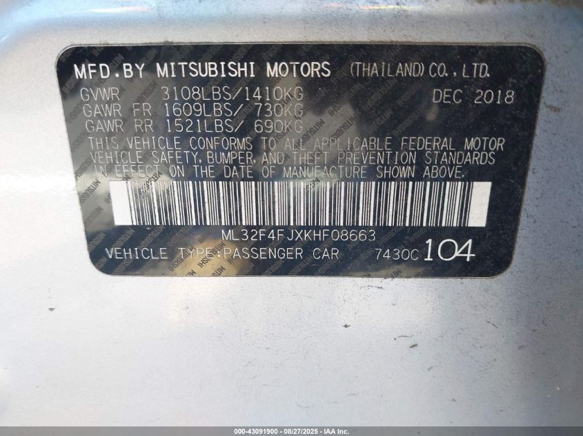 2019 MITSUBISHI MIRAGE 2019 року Бензин, 1.2, Передній привід, vin - ML32F4FJXKH****** з США