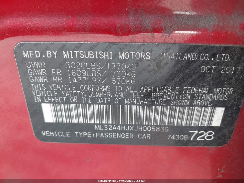 2018 MITSUBISHI MIRAGE ES