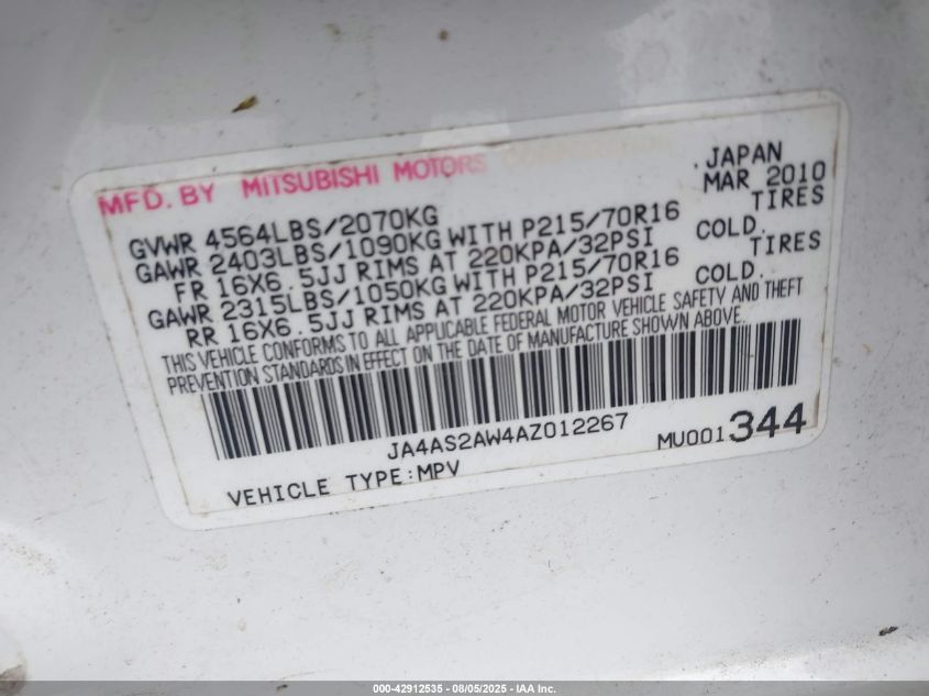2010 MITSUBISHI OUTLANDER 2010 року Бензин, 2.4, Передній привід, vin - JA4AS2AW4AZ****** з США