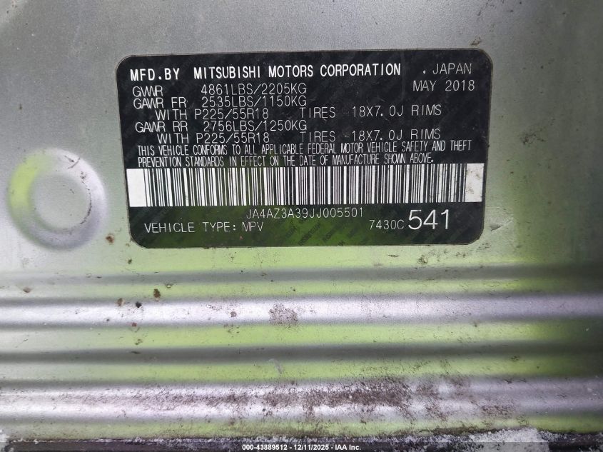 2018 MITSUBISHI OUTLANDER 2018 року Бензин, 2.4, Повний привід, vin - JA4AZ3A39JJ005501 з США