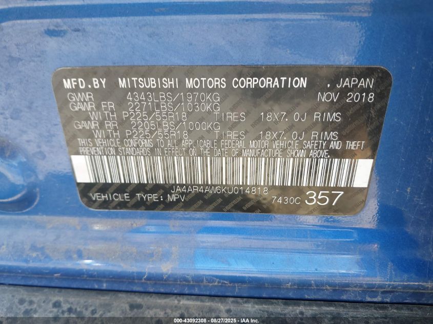2019 MITSUBISHI OUTLANDER SPORT 2019 року Бензин, 2.4, Повний привід, vin - JA4AR4AW6KU014818 з США