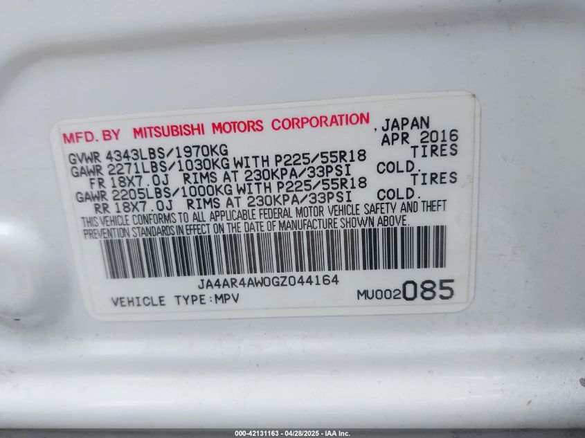 Колір БілийЦиліндри 4Привід Повний привідVIN JA4AR4AW0GZ******Стан НевідомоУшкодження ЗадняДата аукціону 2025-09-22