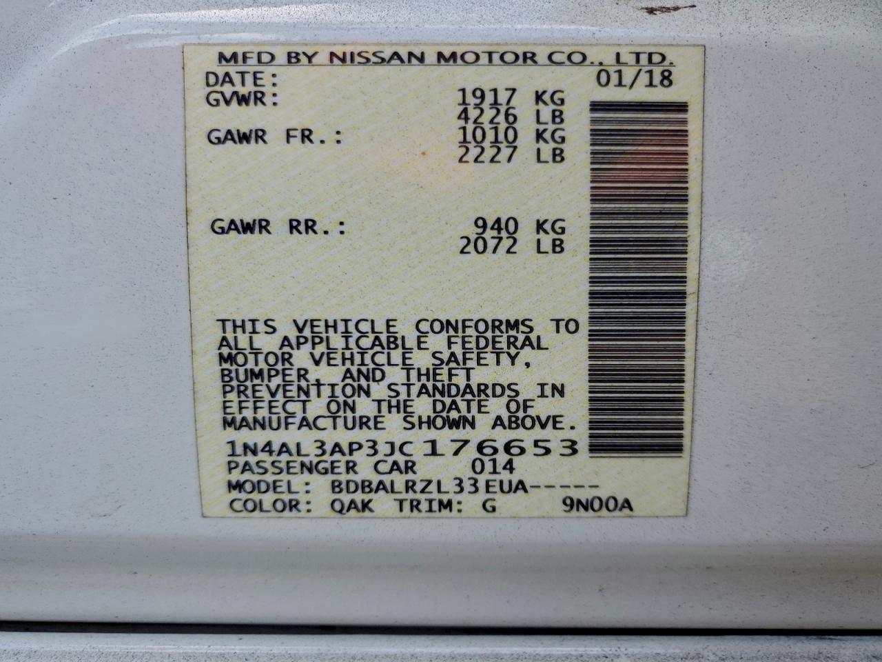 Колір БілийЦиліндри 4VIN 1N4AL3AP3JC176653Стан Заводиться та їде (перевірено)Ушкодження Передня або задня AutoRIA