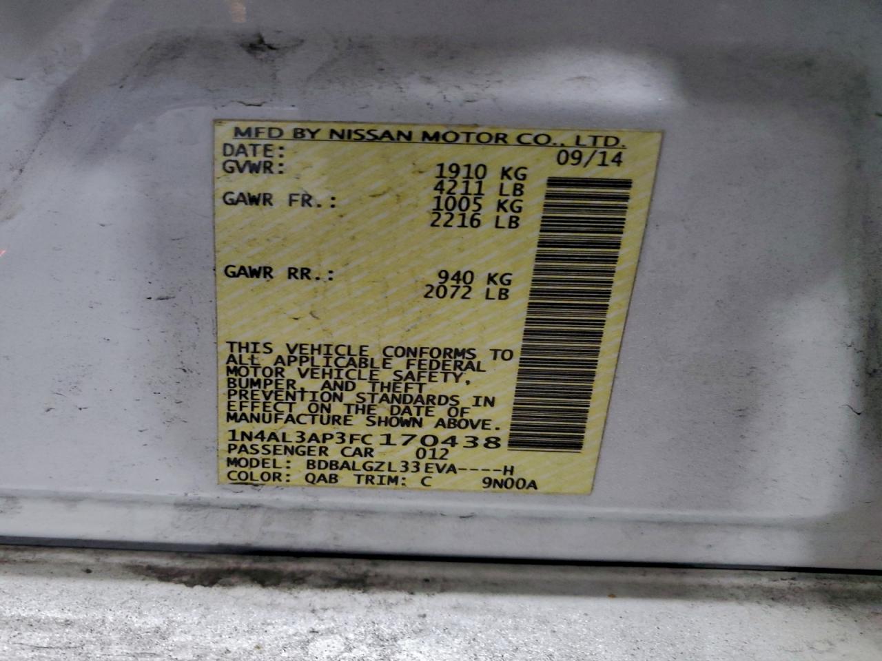 Колір СрібнийЦиліндри 4VIN 1N4AL3AP3FC170438Стан Заводиться та їде (перевірено)Ушкодження Задня AutoRIA