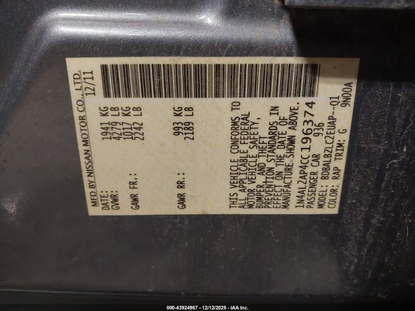 2012 NISSAN ALTIMA BASE