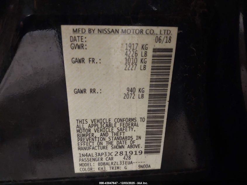 2018 NISSAN ALTIMA 2.5