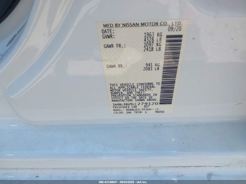 2020 NISSAN ALTIMA 2020 року Бензин, 2.5, Передній привід, vin - 1N4BL4BV9LC279120 з США