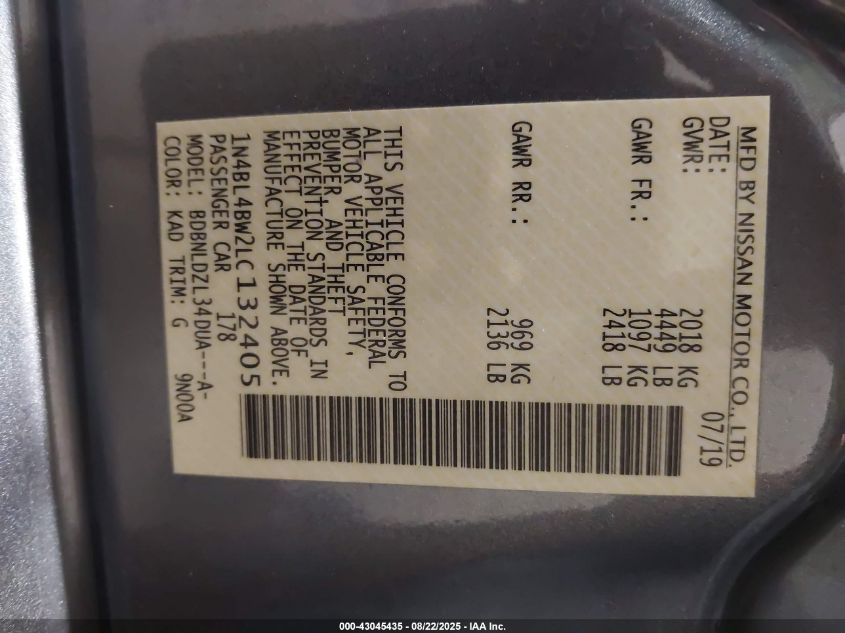 2020 NISSAN ALTIMA 2020 року Бензин, 2.5, Повний привід, vin - 1N4BL4BW2LC132405 з США