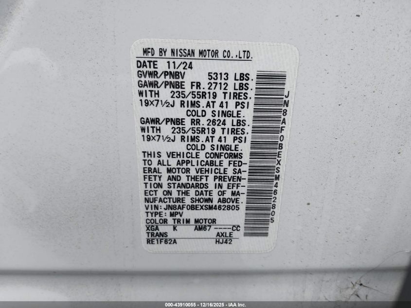 2025 NISSAN ARIYA 2025 року Електричний, U, Передній привід, vin - JN8AF0BEXSM462805 з США