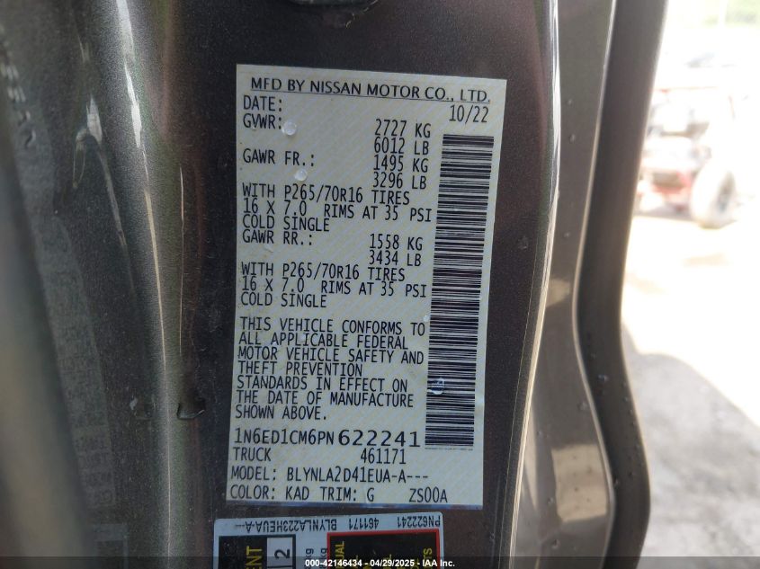 2023 NISSAN FRONTIER 2023 року Бензин, 3.8, Повний привід, vin - 1N6ED1CM6PN****** з США